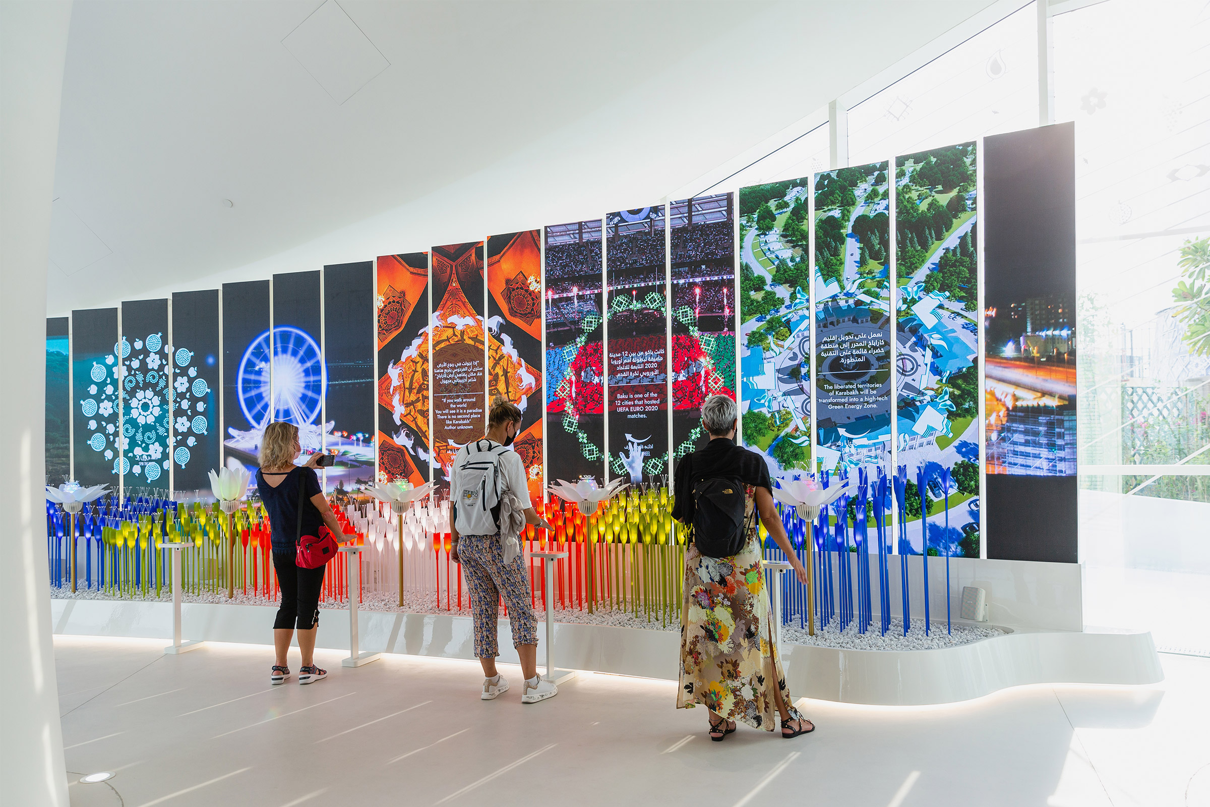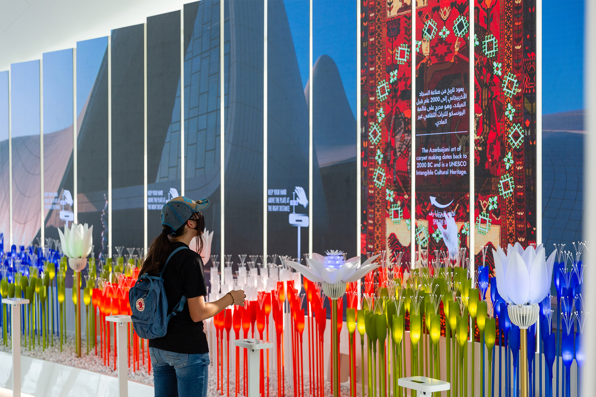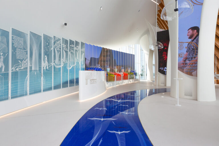 The exhibition involved visitors through stories and reflections on our future. Case studies teach visitors about a country that has managed to make great strides during its young history. Key areas of content focus on Azerbaijans commitment to global challenges such as environment safeguarding and improvement, economy-diversification and investment in human capital and sustainable development, challenges that were often met by introducing avant-garde visions, which represent the “seeds for the future” and precious opportunities for reflection in the Expo context.