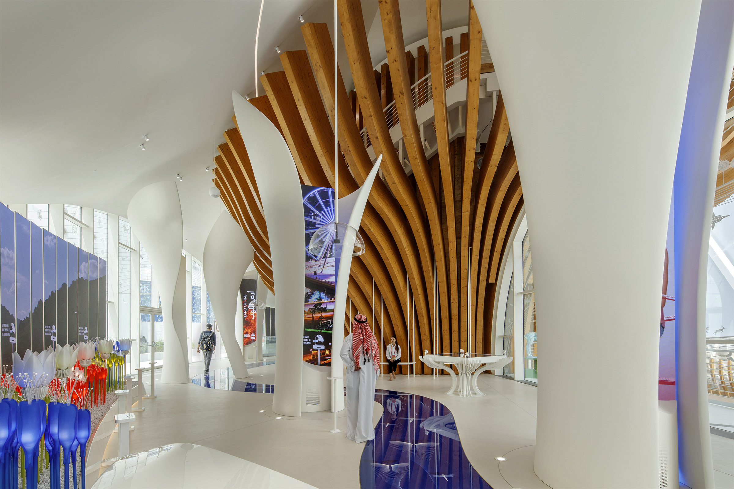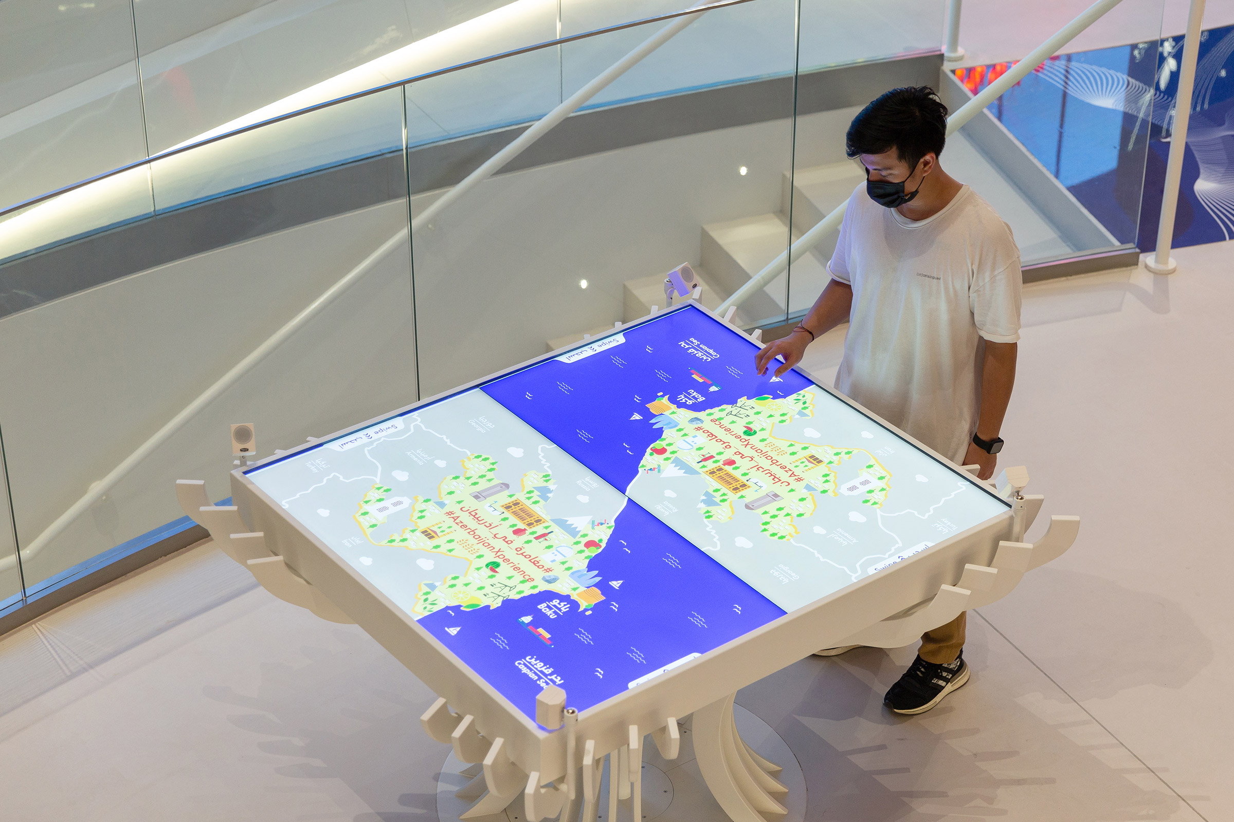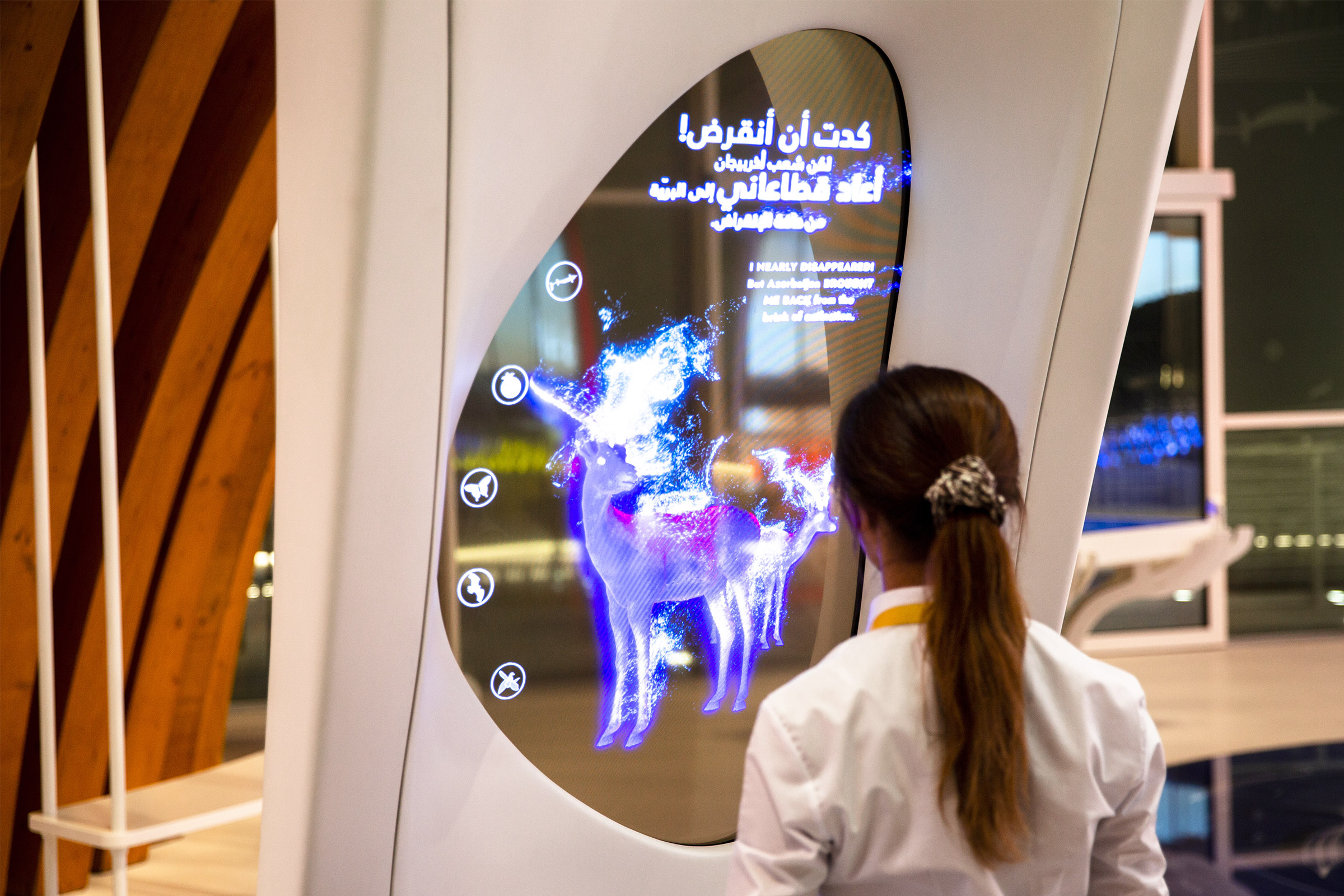 The exhibition involved visitors through stories and reflections on our future. Case studies teach visitors about a country that has managed to make great strides during its young history. Key areas of content focus on Azerbaijans commitment to global challenges such as environment safeguarding and improvement, economy-diversification and investment in human capital and sustainable development, challenges that were often met by introducing avant-garde visions, which represent the “seeds for the future” and precious opportunities for reflection in the Expo context.