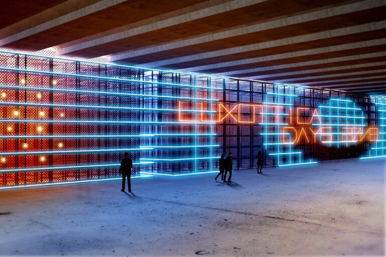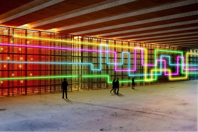 The installation evolves in real time. Sequences of light, synchronized with sound and spatial composition, create a choreography that is both immersive and intuitive.