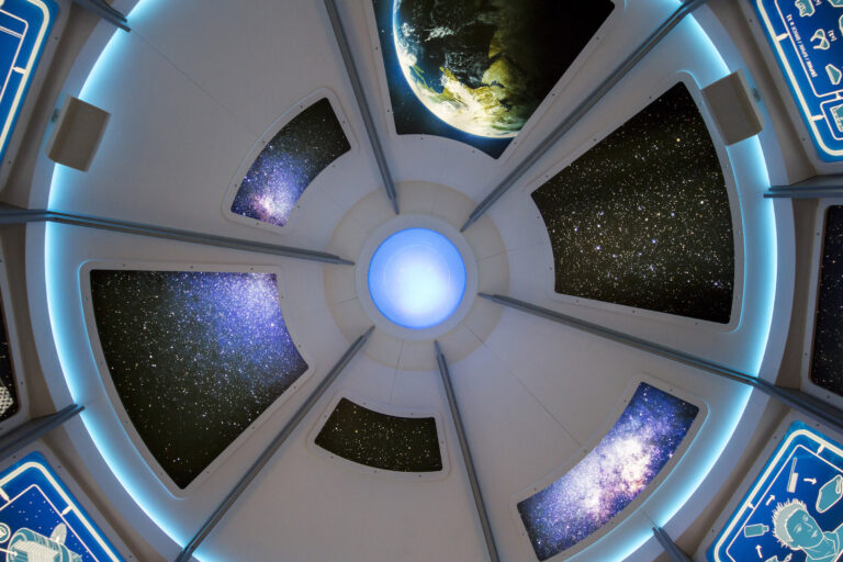 In the glass structure, with a diameter of 80 metres and with 26,000 square metres of space, Simmetrico was in charge of executive production of all indoor fittings as well as implementation of the multi-media installations on the seventh and eighth floors. These are the two highest levels of the Pavilion, with more than 4,500 sq.m. of total surface area, from which the “Future Energy” exhibition route begins.