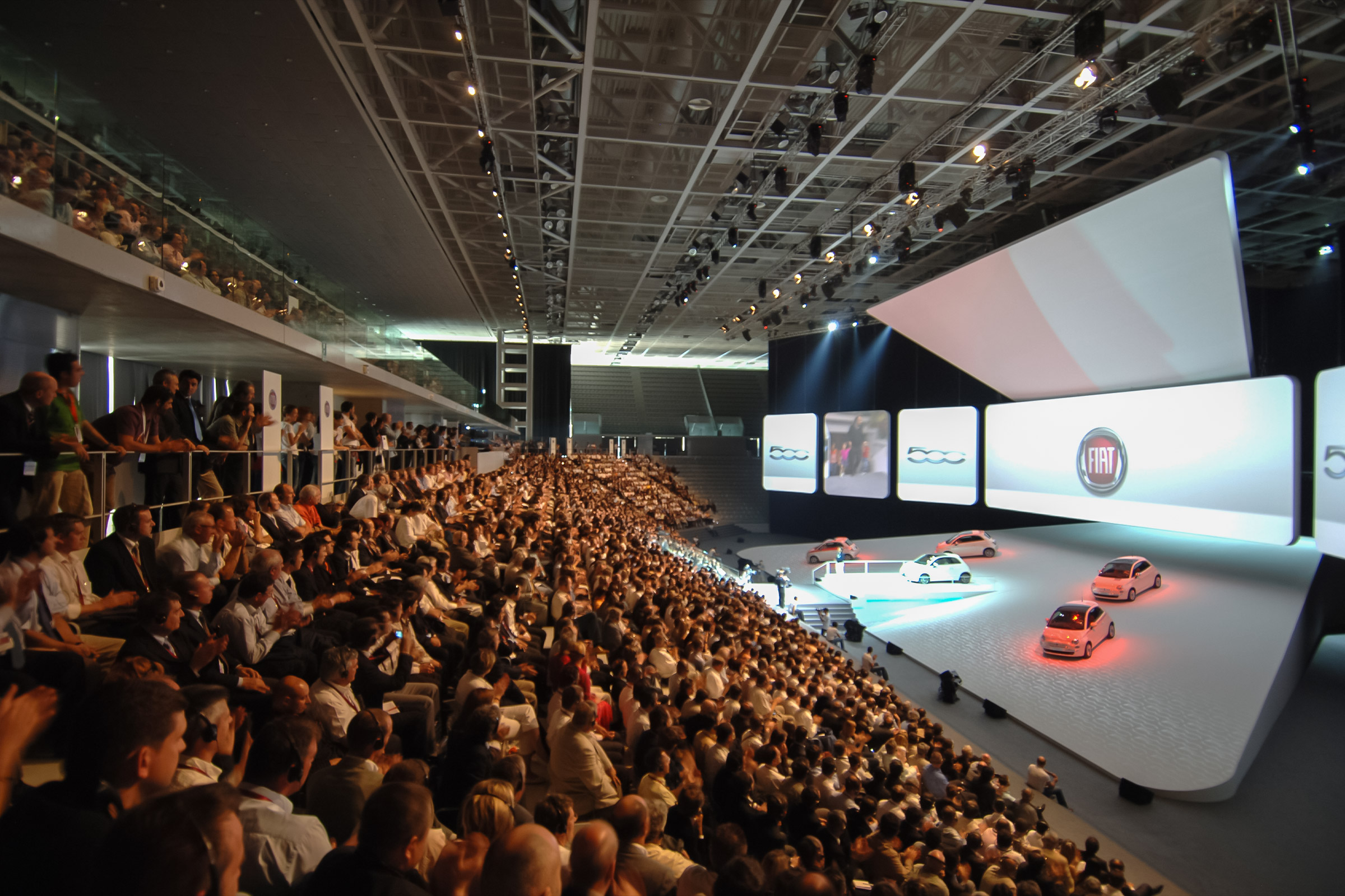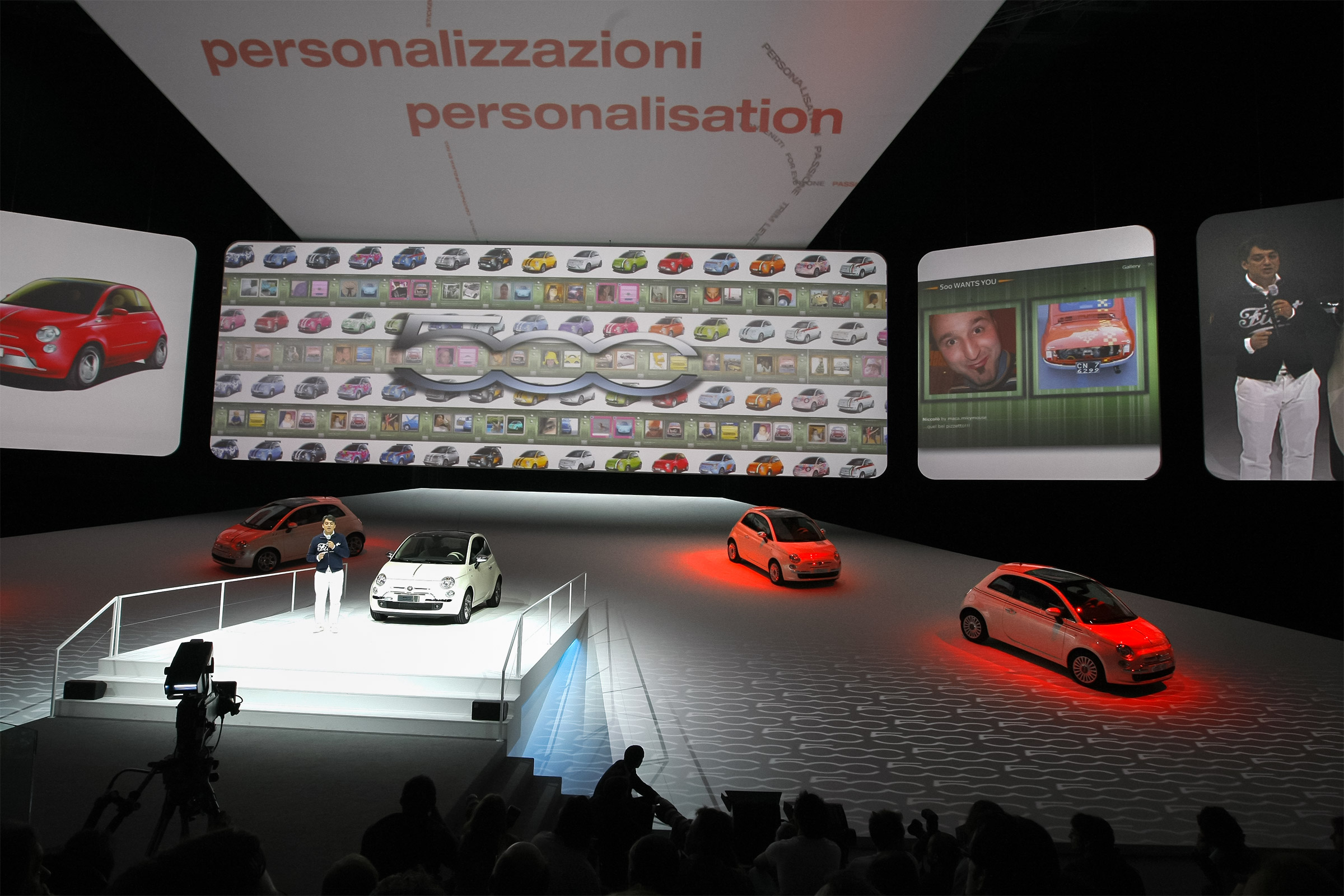 For the launch of new 500, the scene looks like a white box, an environment getting colored with the contents of the new 500.