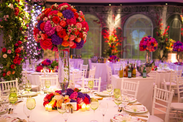Florists team set 850mt of fresh flowers and plants decorations, 114 tons of roses of different varieties and 15 tons of hydrangeas, including decorations made with bougainvillea, lemon trees, ivy and fern plants.