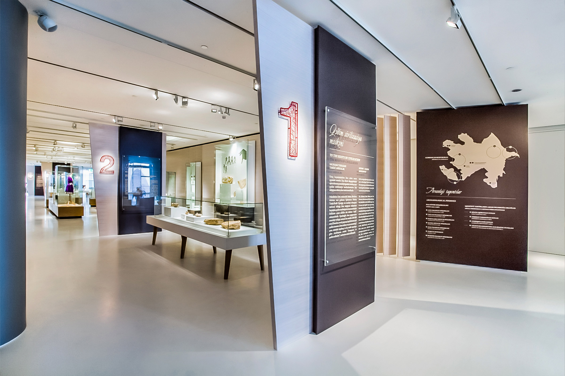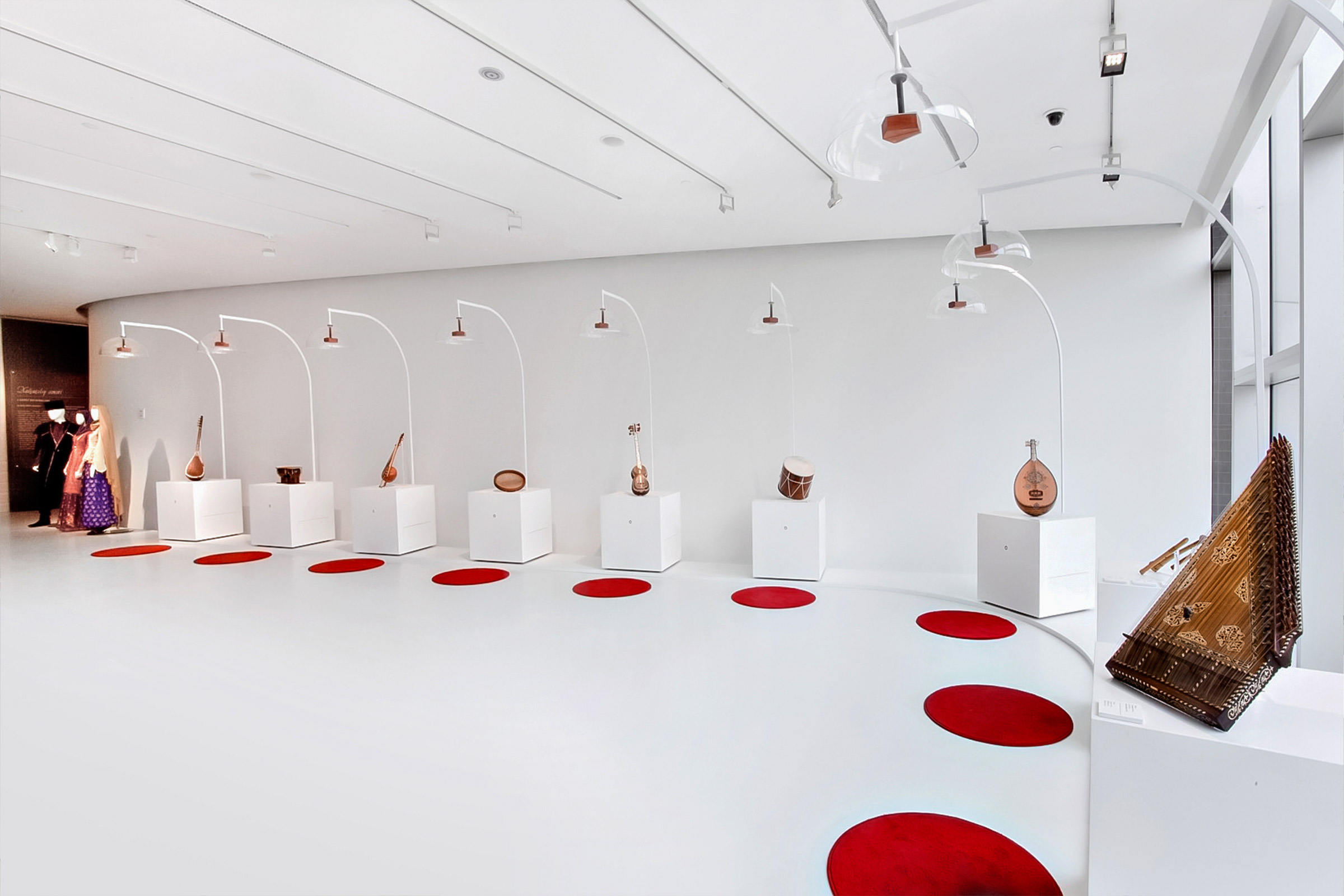 Rare and unique pieces of Azerbaijani art are on display: archeological finds, coins, ancient fabrics, copper artifacts, weapons, jewelry, musical instruments, carpets, ancient manuscripts and traditional costumes. These unique objects show the exceptional variety of the cultural, historical and economical relationships of a country that has been a crossroads of many cultures for a long time.