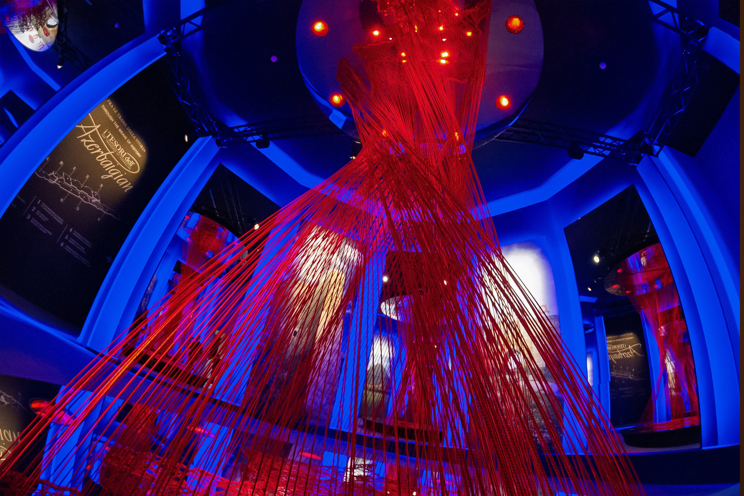 An iconic installation made of woven threads recalls the ancient art of carpet weaving that is traditional in Azerbaijan and at the same time, symbolises the interweaving of cultures that has always characterised Azerbaijan’s history.